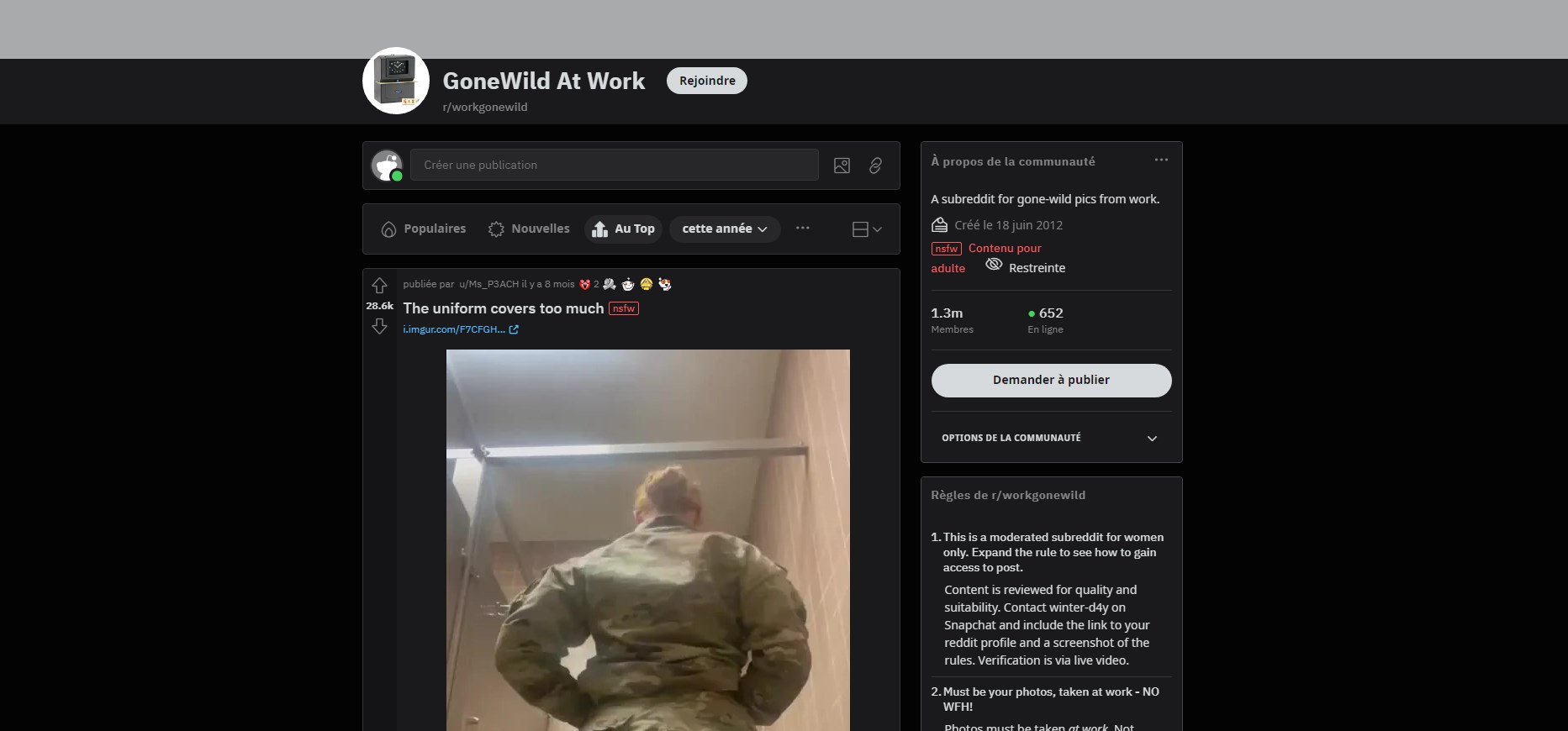 r/workgonewild is 1.5 million members watching women get naughty at their jobs. Nurses flashing their tits in hospital bathrooms, office workers showing their ass in the break room, teachers taking nude selfies in empty classrooms. The appeal is seeing normal, professional women doing dirty things where they could get fired for it. Scrubs pulled down, business suits unbuttoned, work uniforms lifted. It's the fantasy of your hot coworker secretly being a total freak.