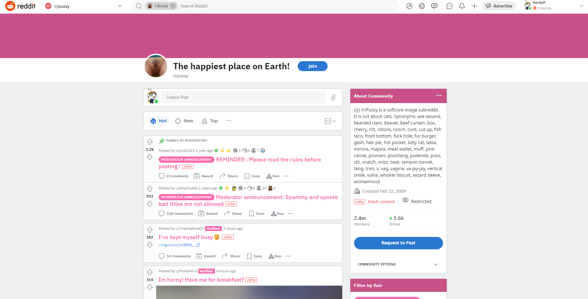 r/pussy, c'est 3,1 millions de membres qui se consacrent aux chattes les plus belles et les plus délicieuses d'Internet. Tous les types sont les bienvenus : grosses lèvres gonflées, chattes serrées, jolies fentes roses, chattes charnues, rasées de près ou de loin. Gros plans sur des chattes mouillées, ouvertes et prêtes à être dévorées. Le contenu est principalement softcore avec de superbes amatrices montrant leurs parties les plus intimes. Si vous appréciez une belle chatte et que vous aimez les gros plans de filles écartant leurs lèvres pour la caméra, c'est le subreddit qu'il vous faut.