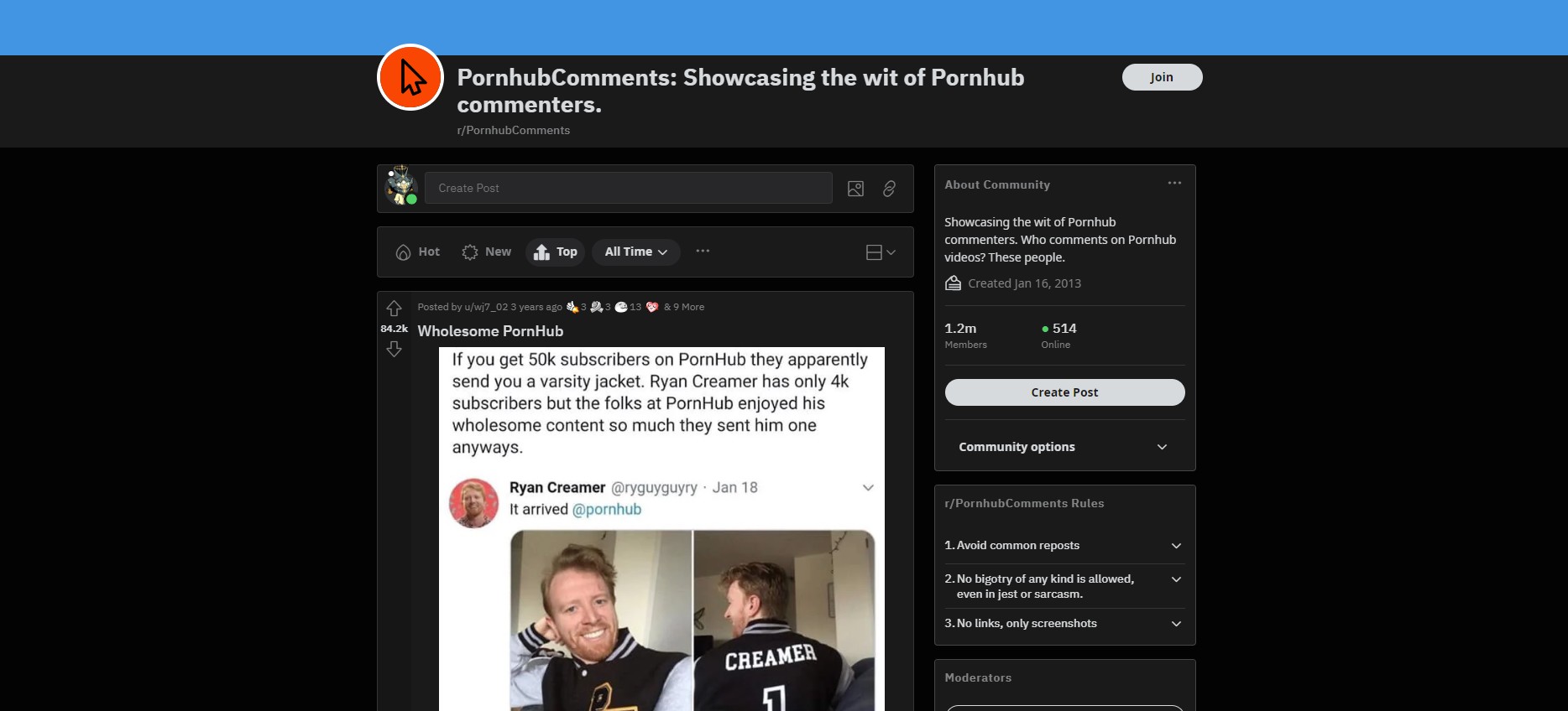 PornhubComments è dedicato alla categoria migliore di Pornhub: la sezione dei commenti. Se avete bisogno di ridere, un giro su r/PornhubComments non vi farà male. Che si tratti di una richiesta di unirsi a un clan di Clash Royale per un video anale o di un ragazzo un po' troppo coinvolto nel video che si lancia in un'analisi di 500 parole, la sezione dei commenti di Pornhub è sempre fantastica.